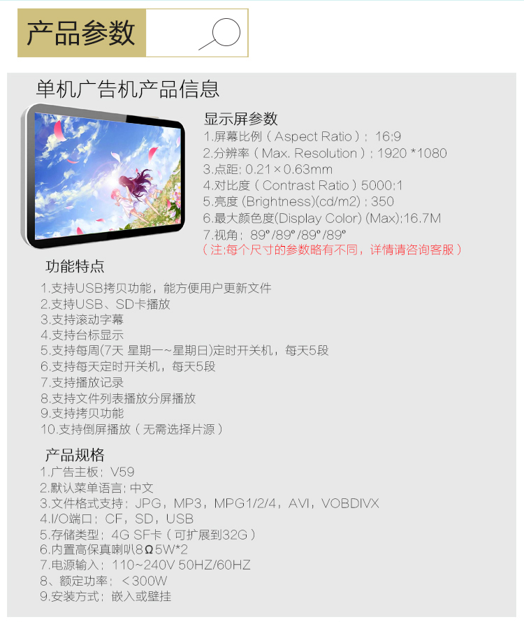 壁掛高清單機(jī)/網(wǎng)絡(luò)廣告機(jī)